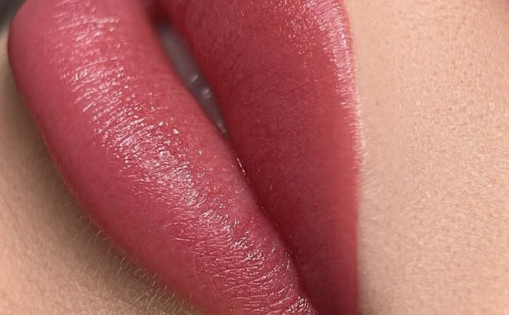 Technique douce de coloration des lèvres pour corriger l’asymétrie, raviver la couleur et obtenir un effet naturel “lèvres mordues”.